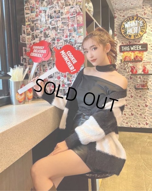 タータンチェックにニット素材をミックスした、
